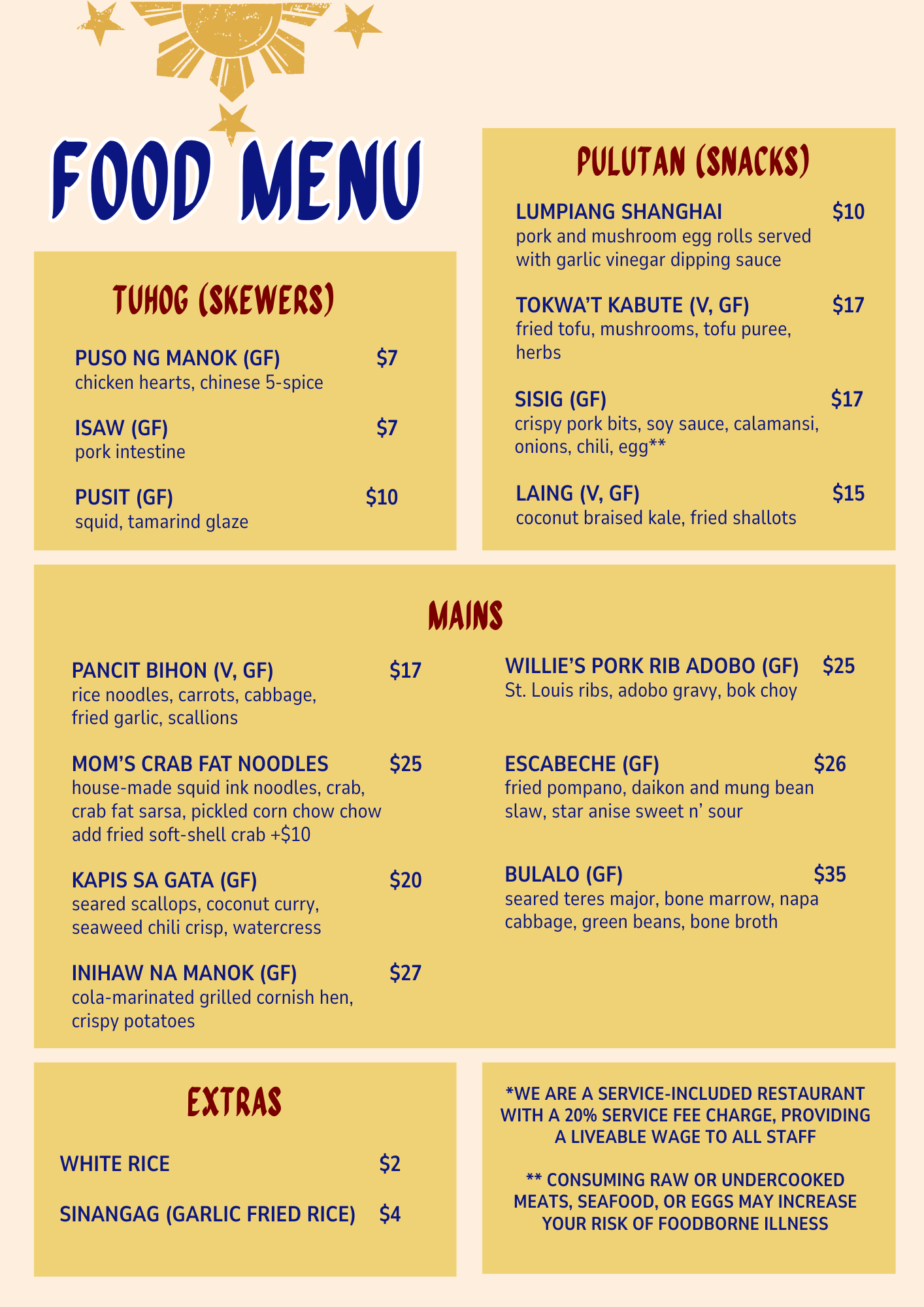 *CONSUMING RAW OR UNDERCOOKED MEATS, POULTRY, SEAFOOD, SHELLFISH, OR EGGS MAY INCREASE YOUR RISK OF FOODBORNE ILLNESS, ESPECIALLY IF YOU HAVE CERTAIN MEDICAL CONDITIONS